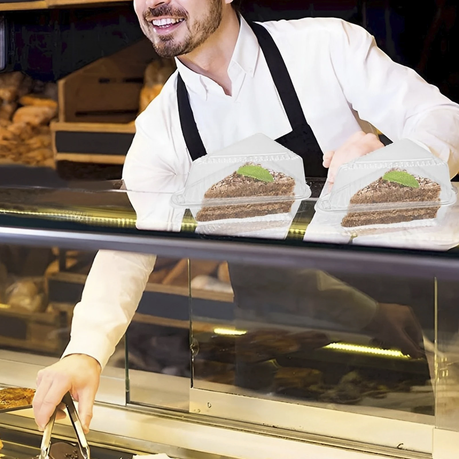 [Reusable Material] Our cake slice boxes are made of premium food grade PS material, which is sturdy and reusable. It has lid design, can guarantee the integrity of cakes.